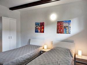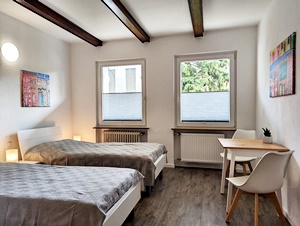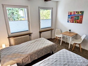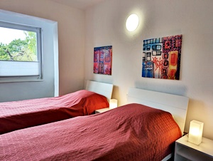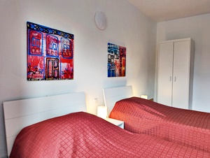 In dieser Wohnung gibt es zwei Schlafzimmer mit je 3 Einzelbetten. Im großen Schlafzimmer ist auch bequem